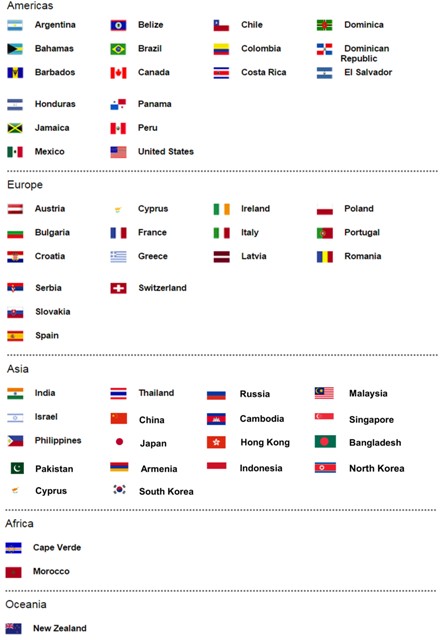Key areas around the world